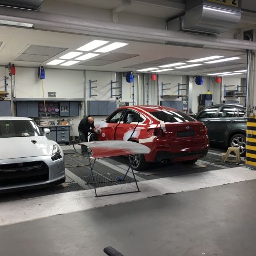 In unserem modern eingerichteten Spritzwerk bringen wir Ihr Fahrzeug wieder auf Hochglanz. Damit Ihr Fahrzeug eine qualitativ hochwertige Lackierung bekommt, sorgen unsere gut ausgebildeten Lackierer, die immer auf dem neusten Stand geschult werden.